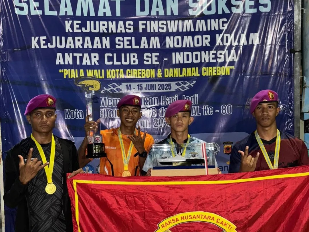 Kerjasama Tim Yang Baik, Atlet Finswimming Pasmar 3 Raih Juara Utama Pada Renang Estafet